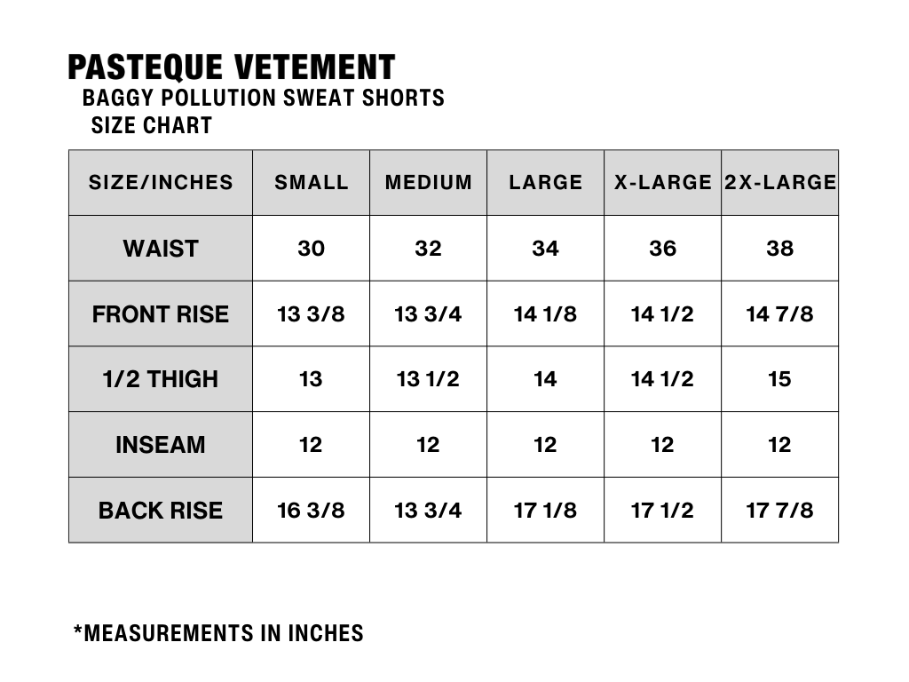 These shorts are cut from the Baggy Pollution Sweatpants; raw edge hems. Not reinforced.
