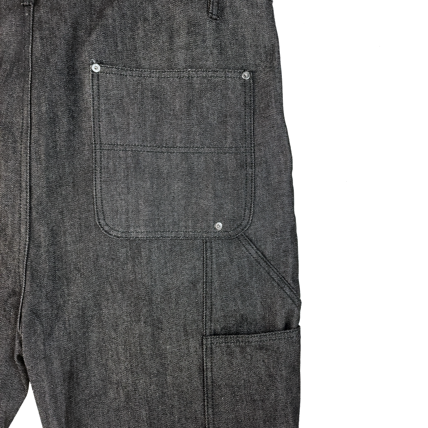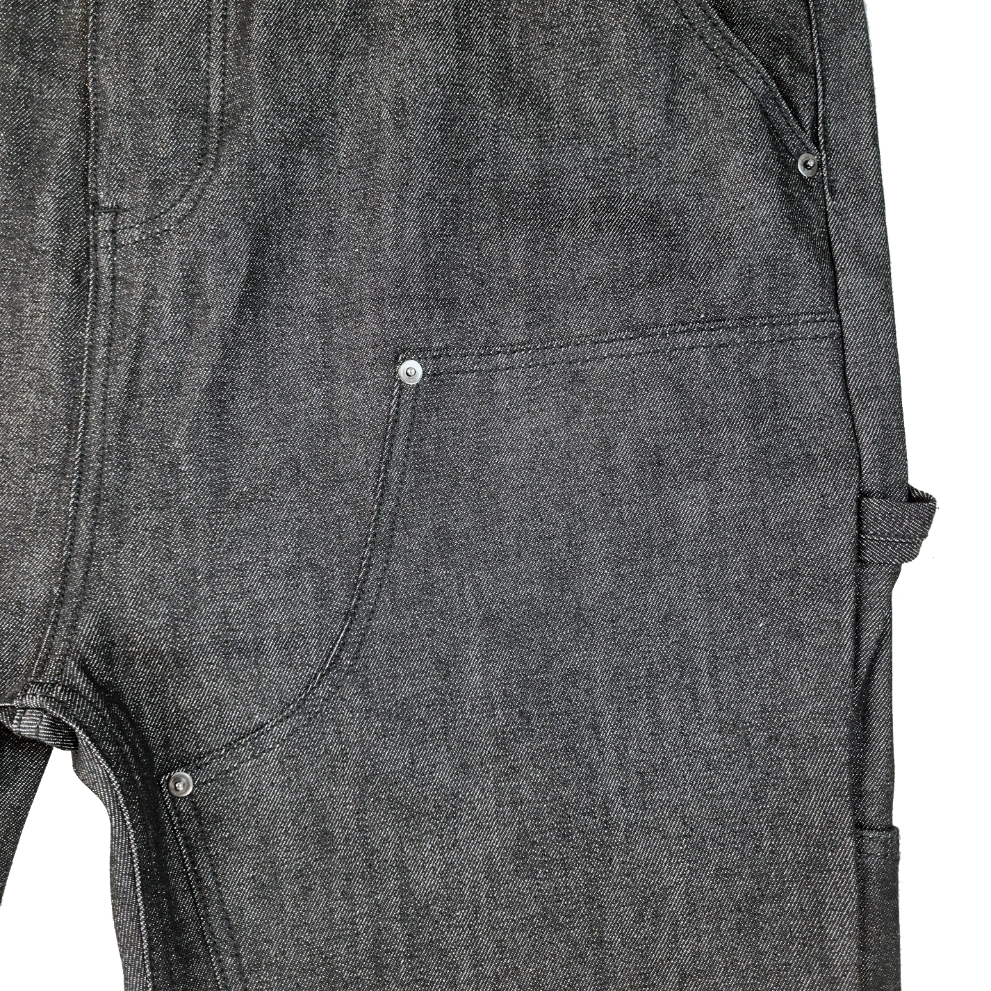 Wide Flared cut, double knee layers, low-crotch style, four pockets, waistband adjusters on both sides, button open fly.